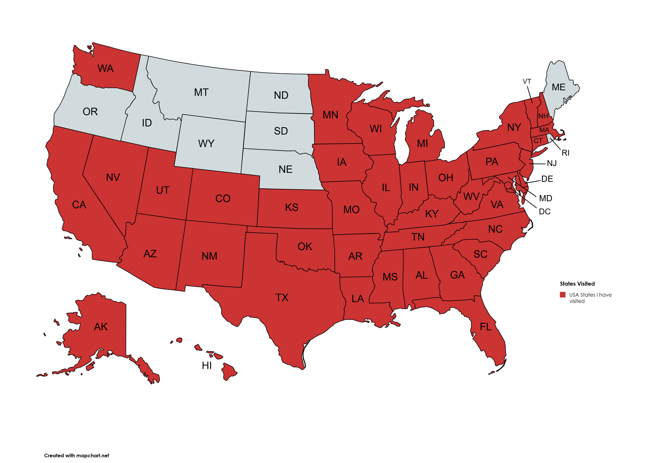 Here are some maps showing where I have been to in the USA, Europe, and the world. I made